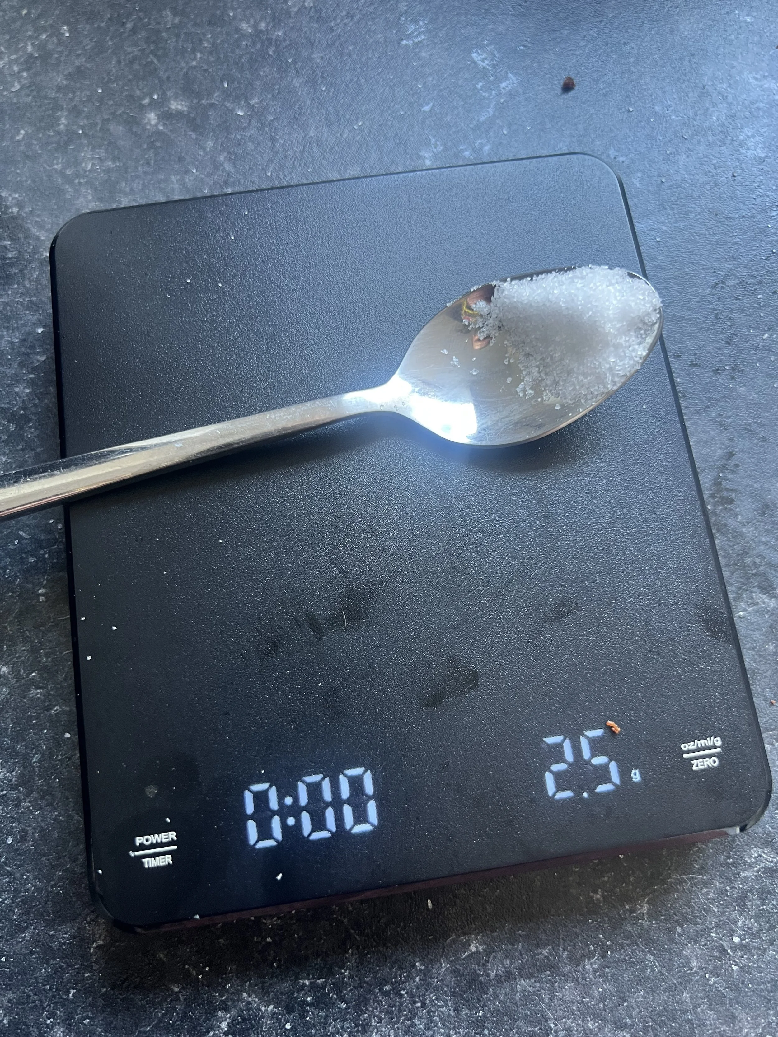 2.5g of table salt per litre of water is the target to aim for.