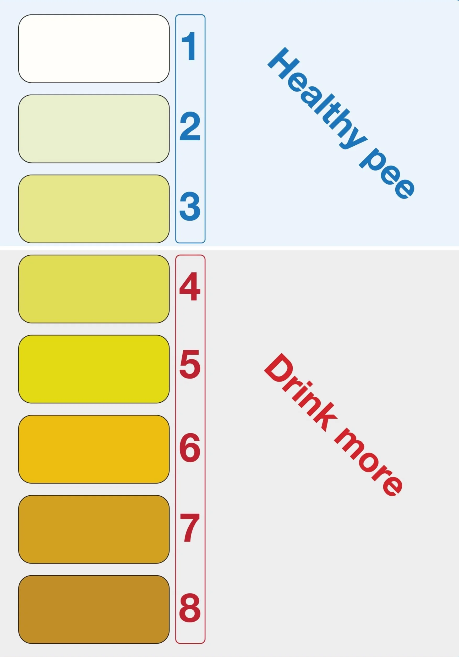 Urine colour chart, pale straw is the goal